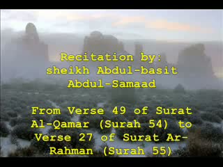 A recitation by sheikh Abdul-Basit from Verse 49 of Surat Al-Qamar (Surah 54) to Verse 27 of Surat ArRahman (Surah 55).